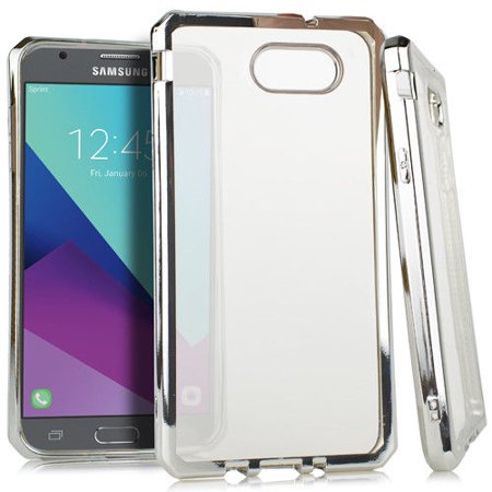 For Samsung Galaxy J7 V Sky Pro Prime 2017 Silver Chrome Tpu Rubber Skin Case Walmart Com